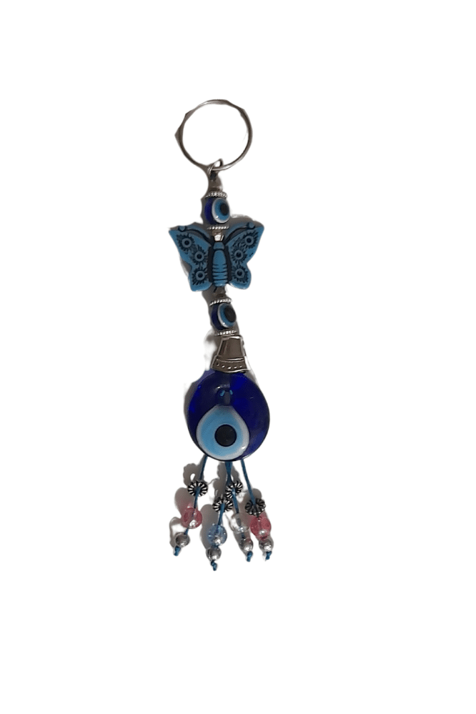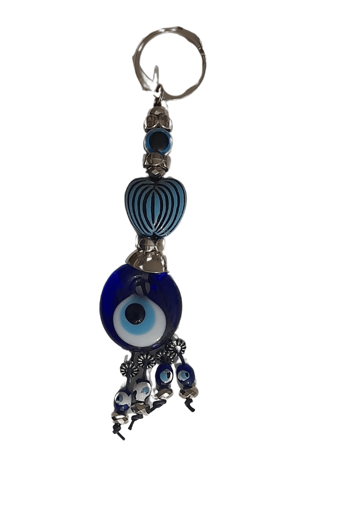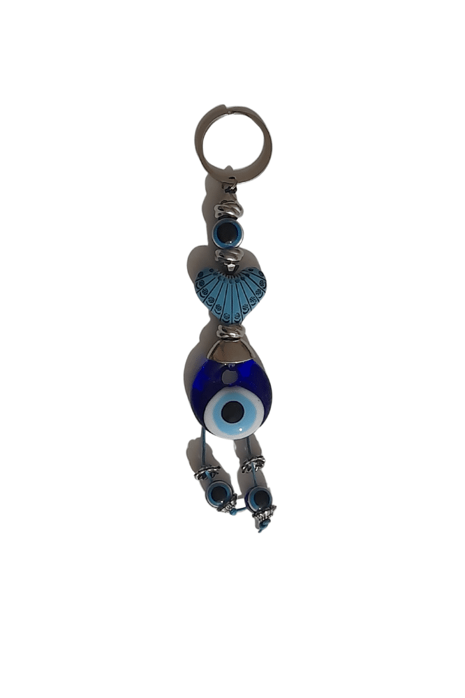 Keychain with glass eye and beads.