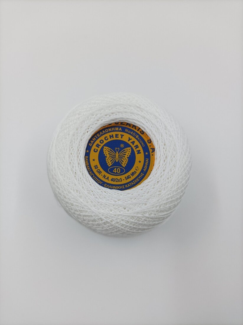 Το Δαντελόνημα Πεταλόυδας Νο 40/6 σε πελότα είναι εξάκλωνο Ελληνικό προϊόν από 100% βαμβάκι.