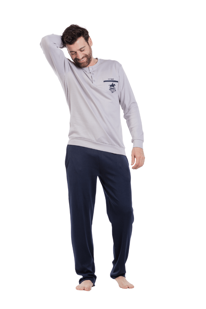 Men's pajama top with buttons in gray.