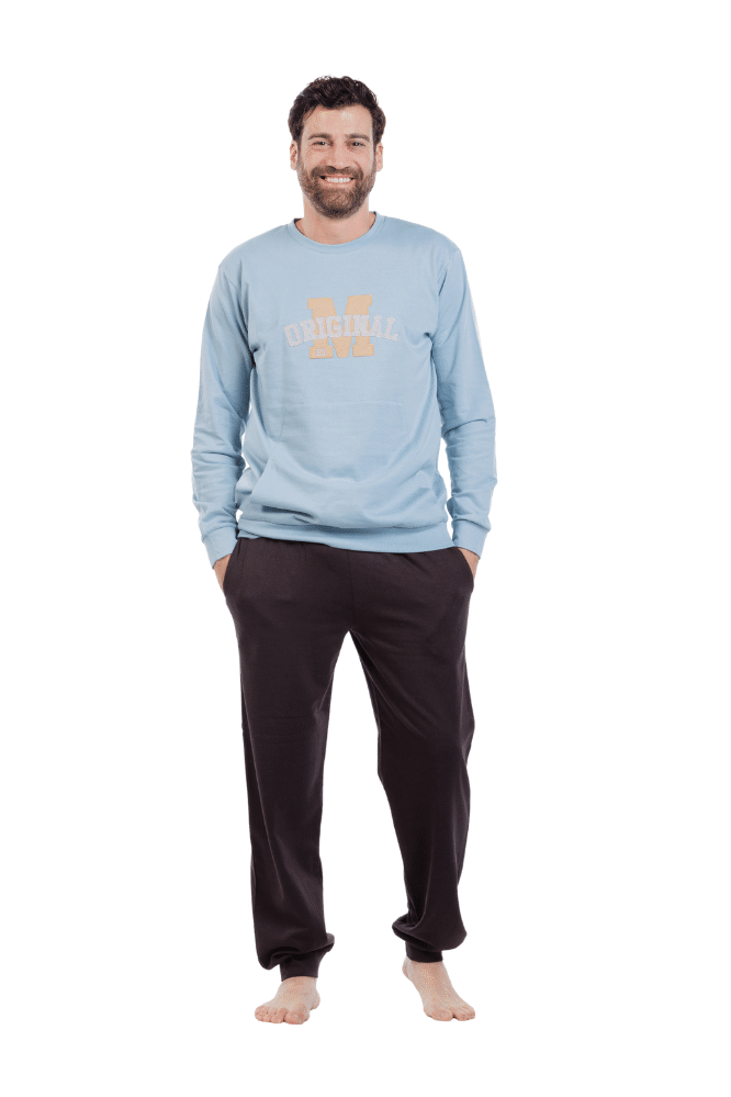 MEI Men’s Winter Cotton Pajama Top 902535 Light Blue