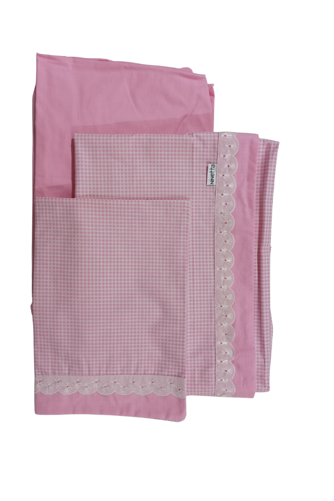 Ninetta bebe White Sheet Set with Lace Trim N 489 PINK