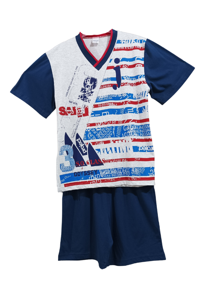 Ανδρική πιτζάμα σετ με κοντομάνικο μπλουζάκι και λαιμόκοψη σε σχήμα V. Μέγεθος S