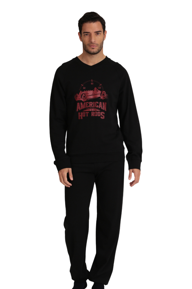 Men’s pajama set in navy and black by Uomo. Perfect for keeping you warm in the winter months. Made of cotton fabric that allows the skin to breathe, does not cause allergies and has a particularly soft texture.