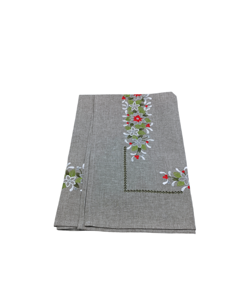 Tablecloth with Azure & Embroidery in Gray with Red and Green.