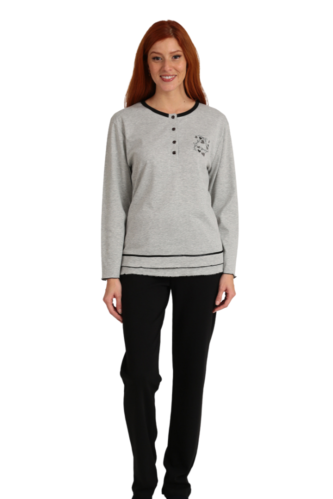 Γυναικείο σετ πιτζάμας σε Χρώμα γκρι μελανζέ και Λιλά της εταιρίας Lydia Creations.