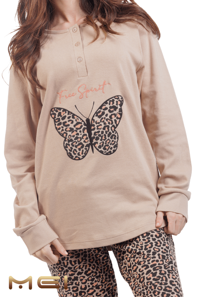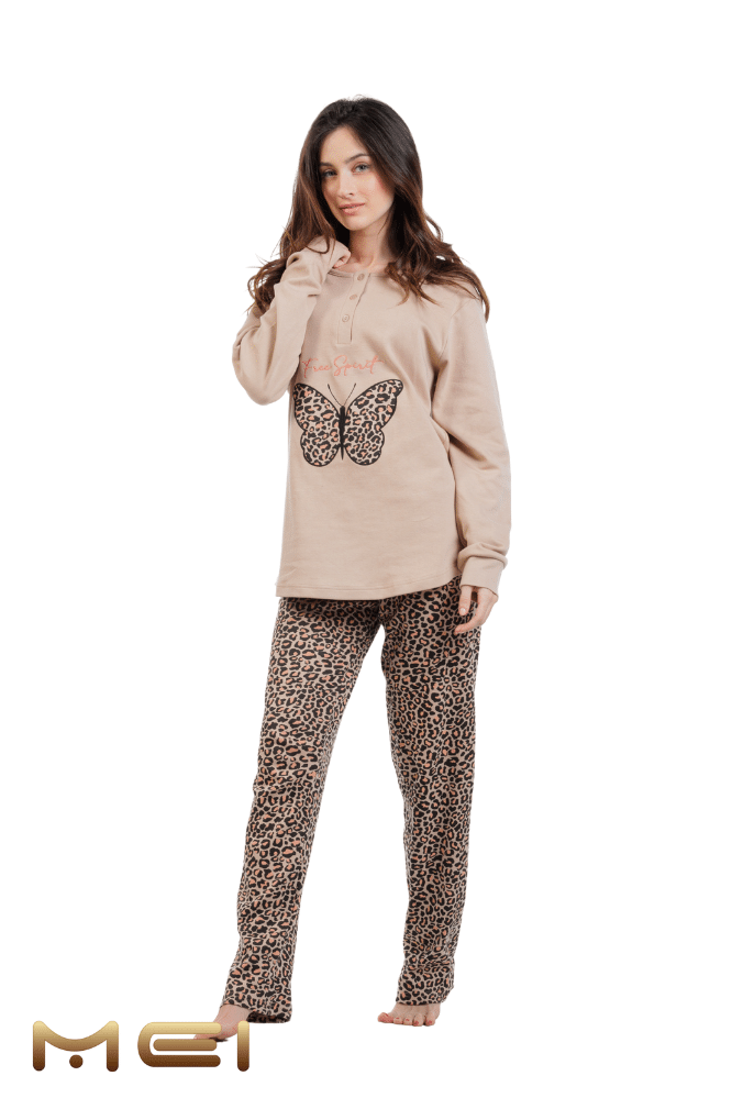 MEI Χειμερινό Γυναικείο Σετ Πιτζάμας Βαμβακερό 802510 Μπεζ