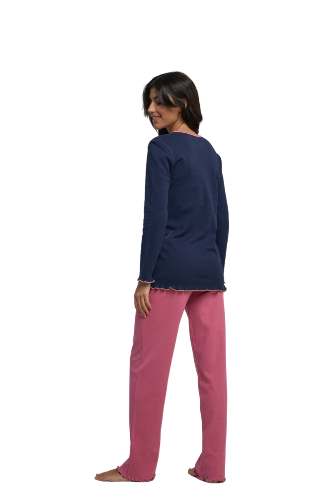 Miss Rodi Χειμερινό Γυναικείο Σετ Πιτζάμας Τριαντάφυλλα Πλαίσιο Μπλε Μ 3958