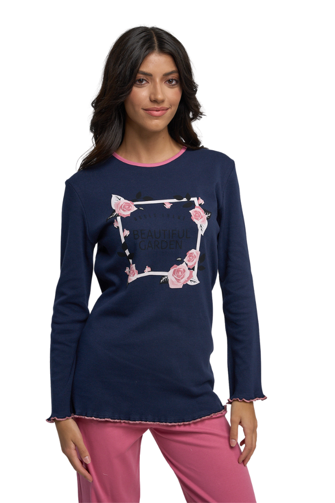 Γυναικείο σετ πιτζάμας Τριαντάφυλλα Πλαίσιο σε μπλε χρώμα της εταιρίας Miss Rodi.