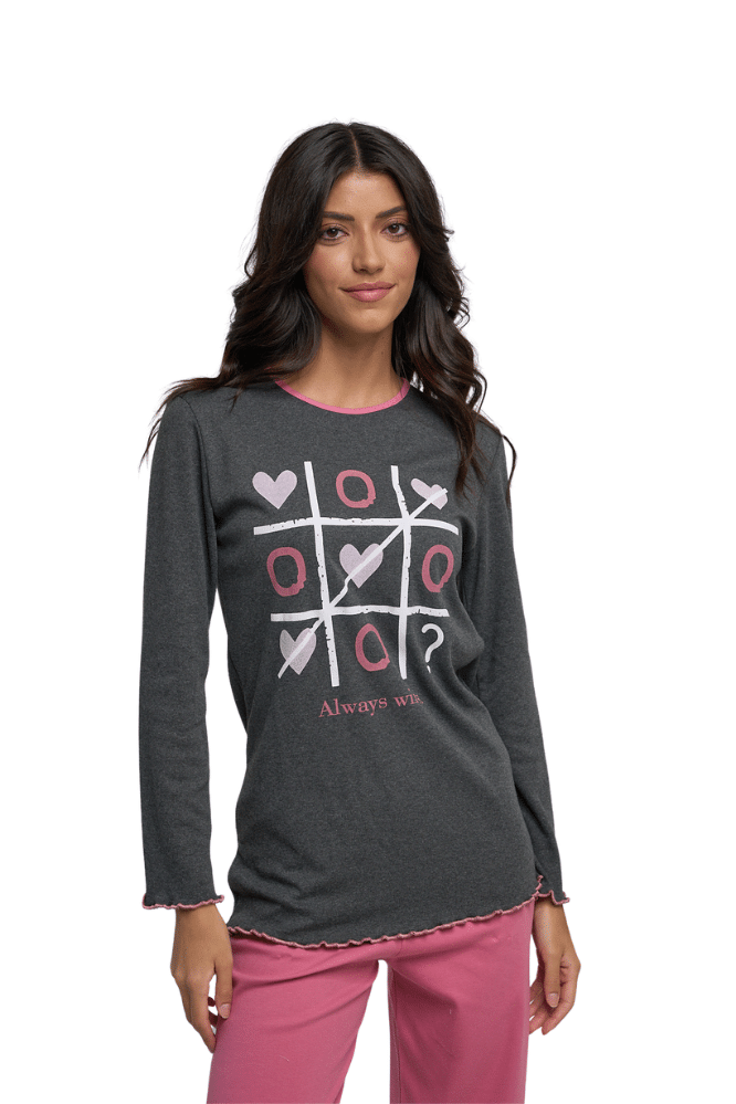 Miss Rodi Χειμερινό Γυναικείο Σετ Πιτζάμας Τρίλιζα Ανθρακί M 3956