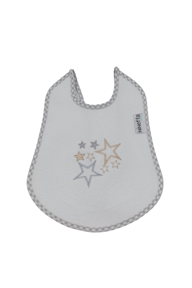 Σαλιάρα λευκή, πετσετέ με πλαστικό και καρώ ρέλι σε γκρι χρώμα.