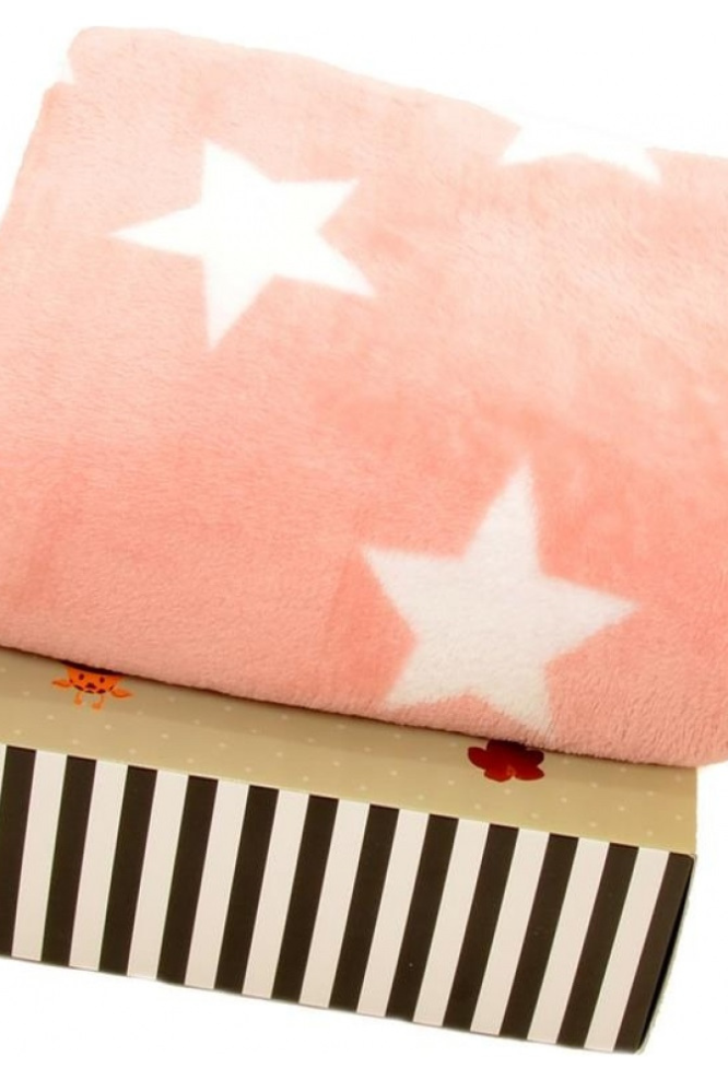 fleece κουβέρτα από την εταιρεία Silk Fashion σε ροζ απόχρωση και σχέδιο με αστέρια.