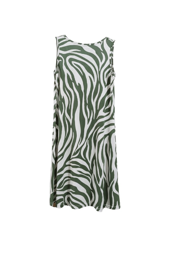 Αμάνικο φόρεμα με φαρδιά ράντα με άνετη γραμμή σε Χακί χρώμα.